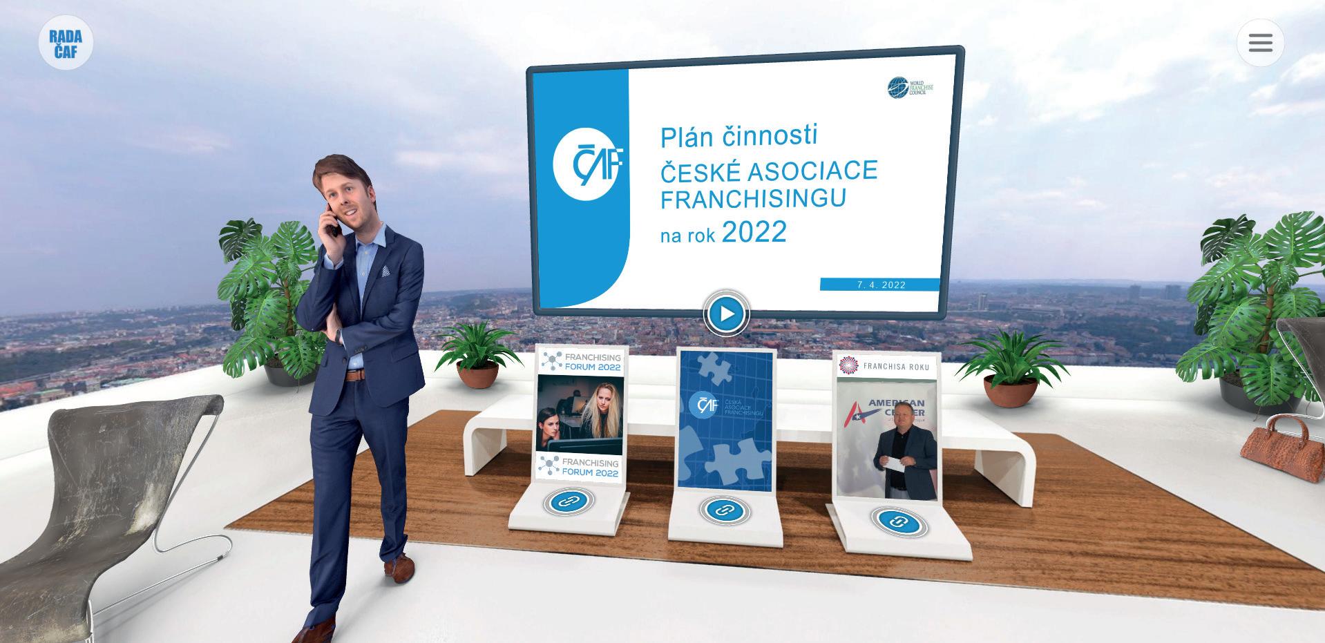 Pro fi rmu Health communication, která se zabývá odborným vzděláváním lékárníků, jsme v březnu připravili už šestý 3D kongres. Loni na podzim s námi spolupracovala Česká asociace franchisingu. A Výstava franchisingu se bude ve 3D prostředí opakovat i letos. Někteří vystavovatelé si pronajali svoji místnost ve 3D i po akci a využívají ji k vlastním marketingovým aktivitám. Například Remax, Pizza Hut nebo Naturhouse.