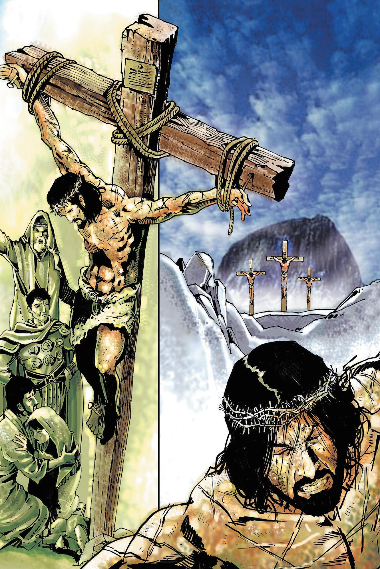 It was—and still is. Listen! They brought Jesus to a hill called Golgotha, which means “Place of the Skull,” and they offered him wine drugged with myrrh as a painkiller, but Jesus refused it. Then they nailed him to the cross at nine o’clock in the morning. They fixed a sign above his head which said: “The King of the Jews.” People passing by laughed and jeered, saying, “Prove that you are the King—come down from the cross!” There were two criminals on each side of Jesus who were being crucified that day, and even they ridiculed him.