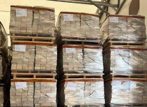 og gjort klar til at vende retur til byggepladsen, hvor de skal indgå i skalmurerne på de tilbageværende tre boligblokke, som skal totalrenoveres og isoleres. Derudover vil de rensede mursten genbruges i murflangen i de nye rækkehuse, som opføres i kvarteret. Projektet er et