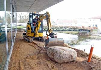 Da Magnus Frisch var på indkøb hos Scantruck efter en hjulgraver, blev det også til en Komatsu PC24MR-5 minigraver, som virkelig kom på arbejde ved kulturhuset lige op ad Lilleåen. Flere særdeles store sten skulle bakses på plads og indgå som elementer i den nye belægning.