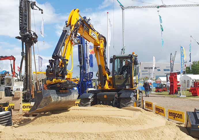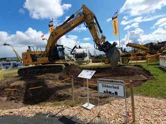 Ved en grusbunke i standens ene ende demonstrerer han, hvordan det ser ud, når maskinakrobatik og ingeniørkunst går op i en højere enhed: Med