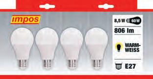 4 Stück, E27, 8,5 Watt, 806 Lumen, warmweiß, 30398109