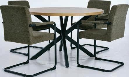 Tisch: Dekorfolie und Stahl. Ø120 x H75 cm 229,- 175,Stuhl: Stoff und Stahl. 89,99 65,-
