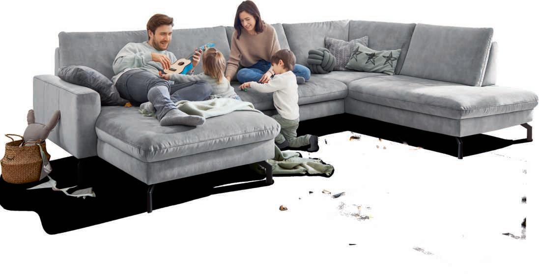 Unica steel, Metallfuß schwarz, best. aus: 2,5-Sitzer mit Armteil links und Canapé mit Armteil rechts. Stellmaß ca. 232x168 cm, ohne Zierkissen. Bezug: 85% Polyester, 15% Baumwolle. 489019