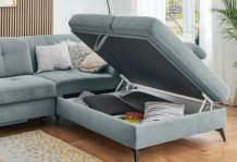 Das Extra an Platz: Der klappbare Stauraum ist perfekt für Kissen und Decken. Gegen Mehrpreis