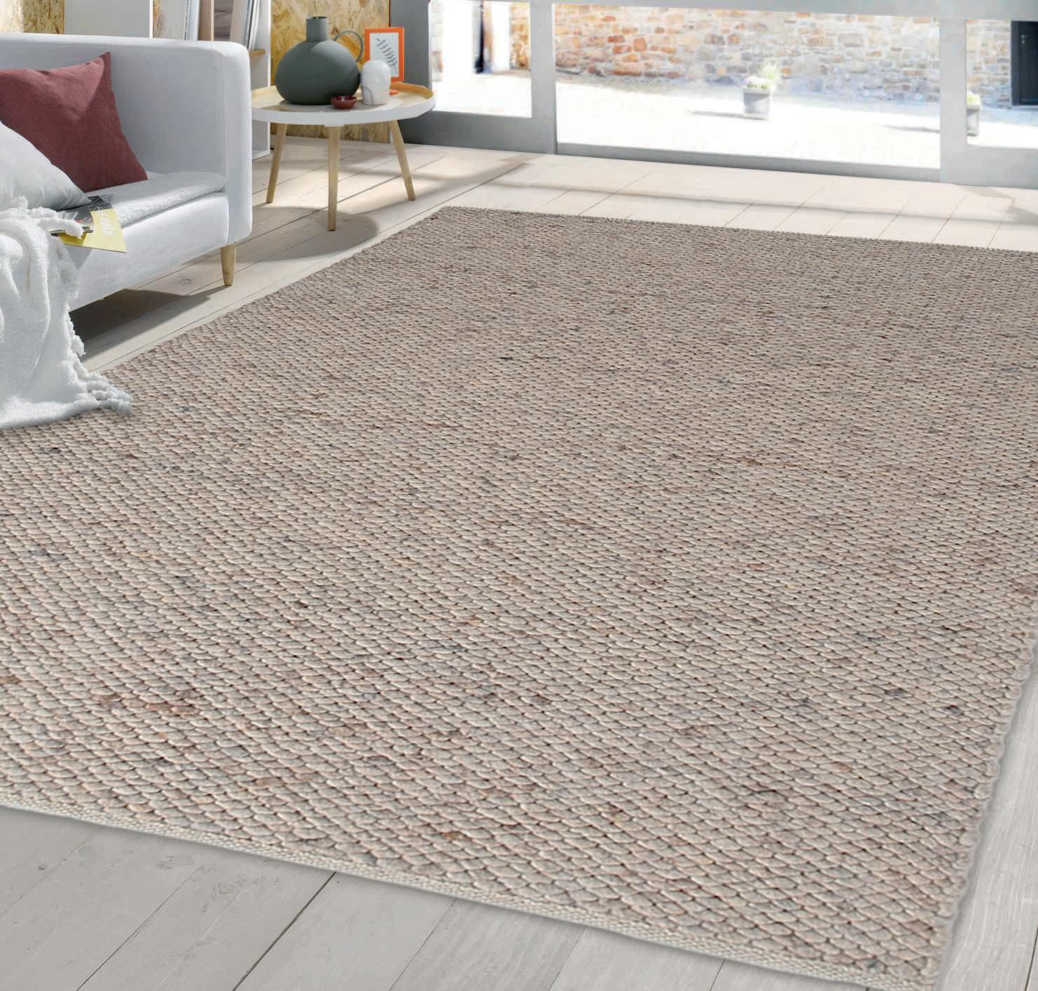 Mit seinen natürlichen Farben und dezentem Design ist dieser Teppiche die ideale Wahl für verschiedenste Wohnstile. Durch die sanften Naturtöne kann sich dieser Teppich problemlos in jedes Umfeld einfügen. 100% Schurwolle, versch. Größen und Farben. 870088/089/090