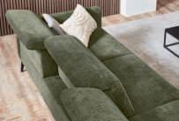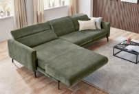 ECKKOMBINATION, Bezug Stoff Maranta olive, Metallfuß schwarz, best. aus: Canapé XL mit Armteil links und 3-Sitzer mit Armteil rechts, inklusive Kopfteilverstellung an allen Elementen, Stellmaß ca. 191x305 cm. Bezug: 100% Polyester. 489246