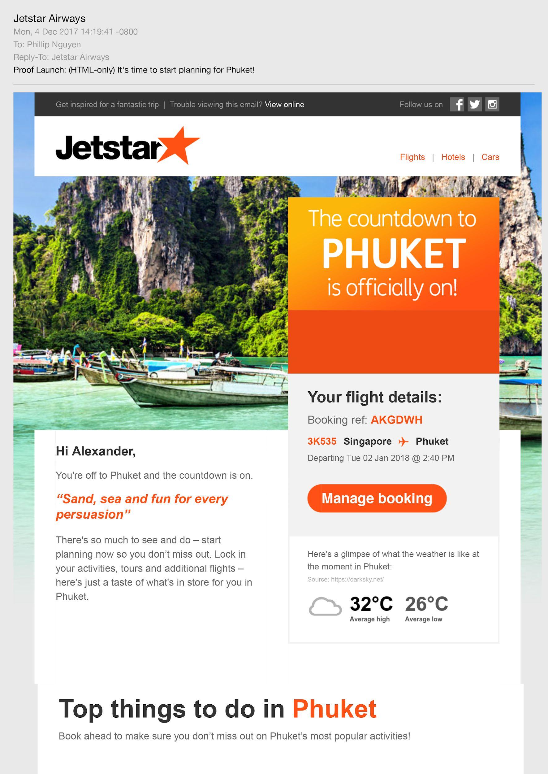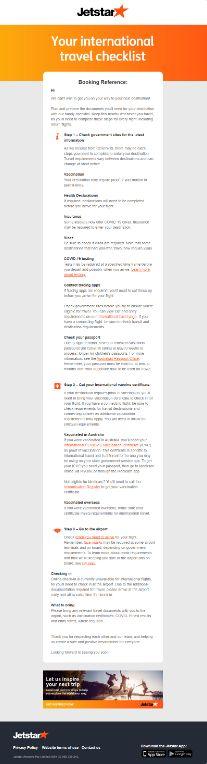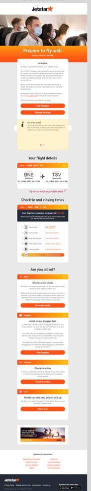 Jetstar’s Pre- and Post-departure Emails guarantee the connection with an audience in active travel and planning mode.