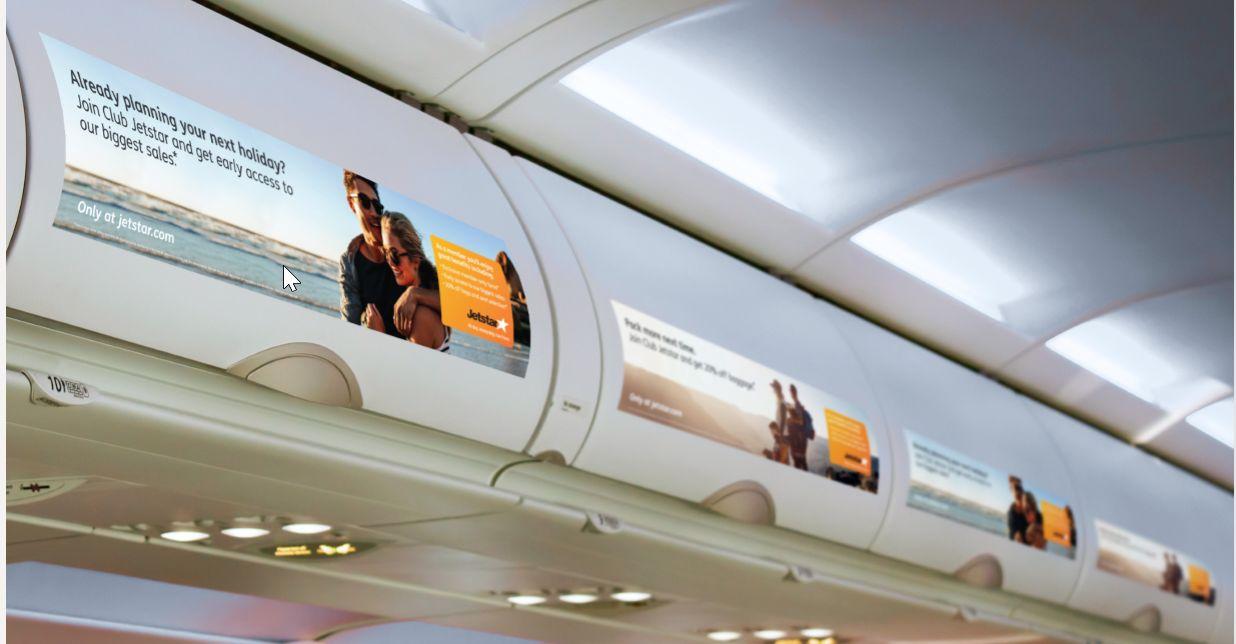 Reach more than 22,000 passengers per month, per plane, in one of the most captive, unsaturated environments imaginable. Advertising on Jetstar’s overhead lockers and tray tables delivers unprecedented dwell time and maximum exposure to all passengers onboard. This media opportunity provides strong visibility of the creative for the duration of the flight.