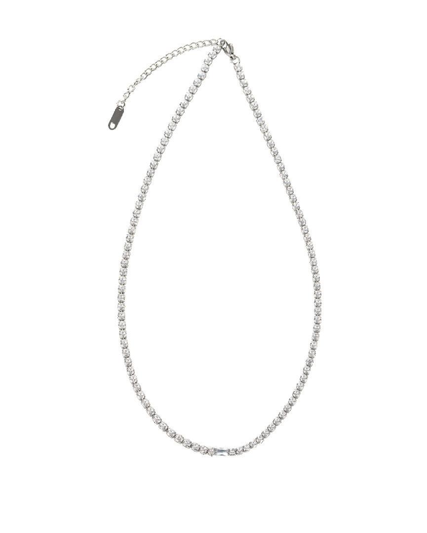 GREGORY LADNER Tennis necklace, $69.95. P E NATION ‘Heads Up’ T-shirt, $79.