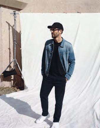 Callum Linnane wears: JOE BLACK blazer, $525, and pants, $270. DAVID JONES COLLECTION T-shirt, $49.95. SAINT LAURENT sunglasses, $785.