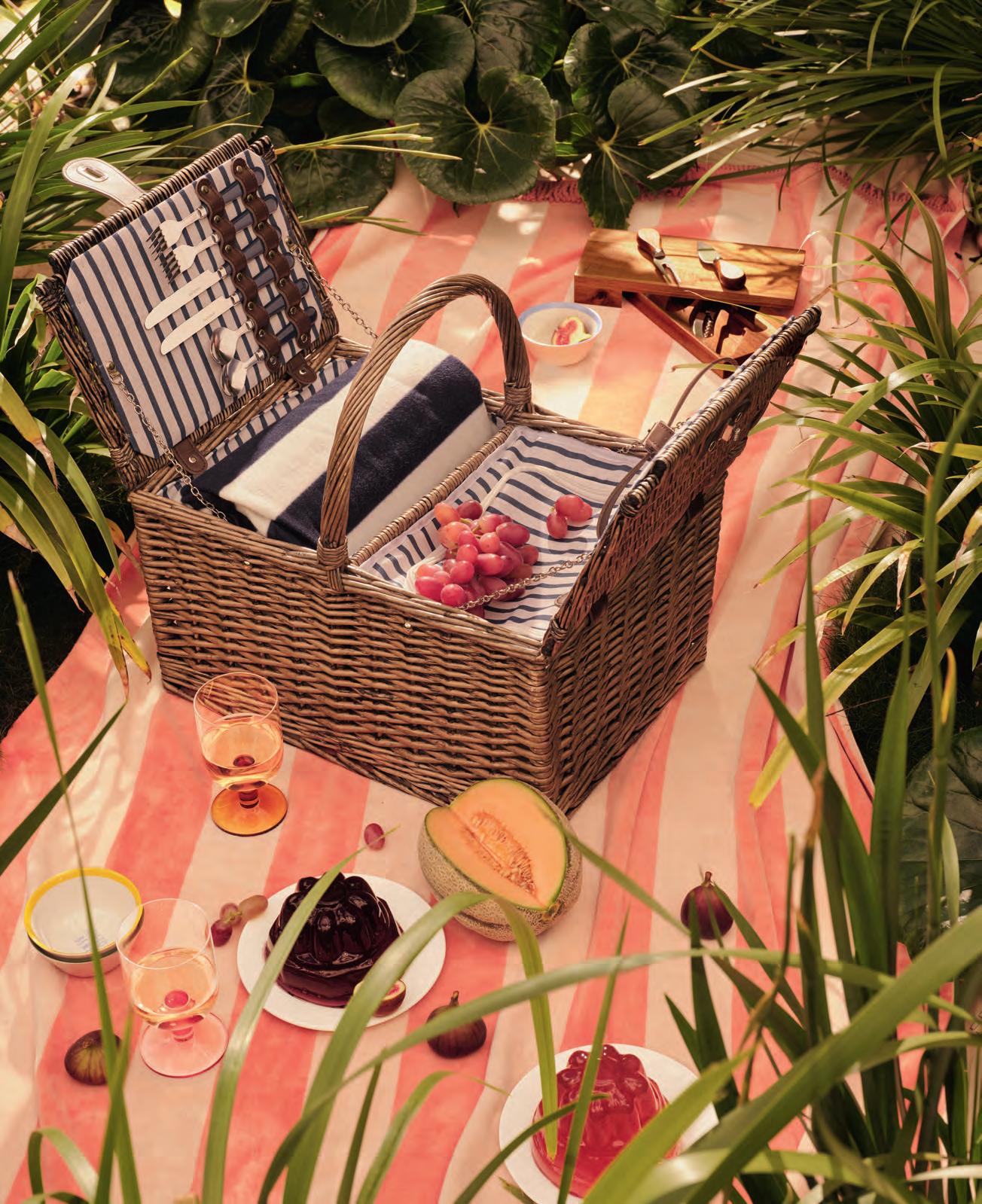 This new approach to outdoor furniture has resulted in an abundance of options, from classic designs to more modern, sculptural settings, available in a range of bright hues. “There’s more great outdoor furniture than ever before – everything has been elevated, from umbrellas and lounges to pool inflatables and even vintage reworked pottery,” says Ollie Edwards, co-founder of Business & Pleasure Co. “There’s no better way to give a space an enhanced aesthetic than by adding vibrant pops of colour or a beautiful French stripe.”
