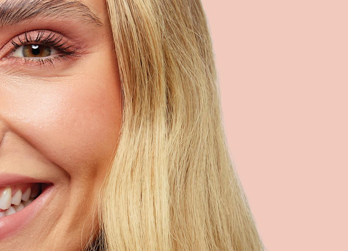 This season’s lit-from-within complexion is flattering and easily within reach. Ensure your skin is well-hydrated before you even pick up a makeup brush, starting with a glowboosting primer that will not only give skin an ethereal finish but ensure your base lasts all day long. From there, apply a velvet-soft foundation where needed to perfect tone and then use a liquid highlighter to add glow to the high points of your cheeks and brow bone, plus the lightest touch down your nose and on the cupid’s bow.