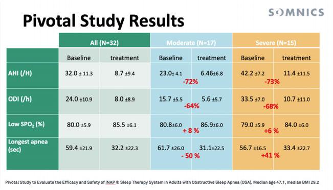 that question their ability to breathe nasally, we have developed a coaching program with tools and tips to get the patient on the right track to breathing nasally again. iNAP has been proven in many clinical trials to effectively treat OSA as shown in the table at right. The FDA granted us a clearance in May 2020 (Class II device) to treat all severities of OSA.