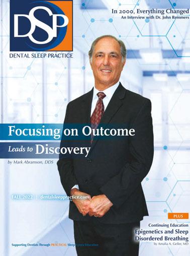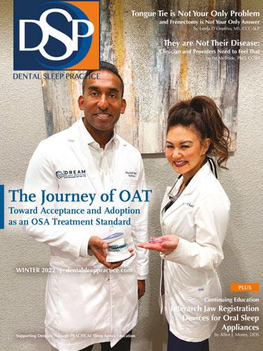 ©MedMark, LLC 2023. All rights reserved. The publisher’s written consent must be obtained before any part of this publication may be reproduced in any form whatsoever, including photocopies and information retrieval systems. While every care has been taken in the preparation of this magazine, the publisher cannot be held responsible for the accuracy of the information printed herein, or in any consequence arising from it. The views expressed herein are those of the author(s) and not necessarily the opinion of either Dental Sleep Practice magazine or the publisher.