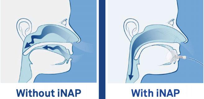 If a patient can breathe through his/her nose, iNAP is efficient in reducing the rate of apneas and hypopneas per hour. For those