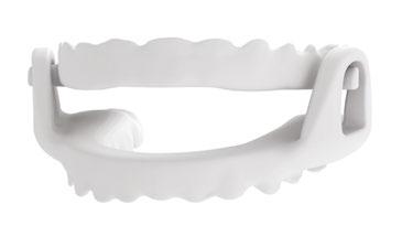 5**: A monoblock, non-adjustable, ergonomic, custom, definitively effective, simple, low-cost oral sleep appliance fabricated after satisfactory home sleep testing of the generic trial sleep appliance shown in Figure