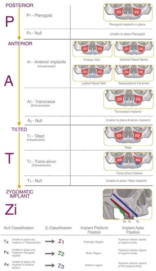 The term remote anchorage refers to the use of alternative support structures outside of the typical alveolar bone housing to stabilize dental implants. Examples include the pterygoid region of the maxilla, the zygoma, and the lateral nasal wall/inferior turbinate, nasopalatine duct, and anterior nasal spine. These anchorage points are typically located outside the immediate area of traditional implant sites, providing greater flexibility in cases where the direct implant site cannot provide enough support. These techniques circumvent challenges related to bone volume and quality, making it an effective solution for patients with insufficient bone, such as those with severe periodontal disease, extensive bone loss, sinus pneumatization, or after tooth extraction.