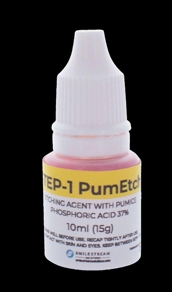 Even better, Smile Stream Solutions also makes private labeling your brand possible. Between Stream Ligners’ private-label packages for your aligner treatment services and our Smile Print capabilities, we can apply your brand and logo to the packaging that your patients receive within your practice. We see this as a critical way to empower you and your brand within the community versus those of your service providers. Beyond all of that, however, is our newly released, patent-protected, innovative breakthrough tooth preparation formula Step-1 PumEtch. Step-1 PumEtch combines pumice and etchant into one single material and eliminates the need for slow-speed handpieces, pumice, prophy cups, and other redundant products and equipment while eliminating a step in your tooth preparation process for either bonding or sealant procedures.