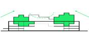 Die Zielsetzung der Auftraggeber war es, um einen kompakten Gebäudekomplex zu realisieren, wobei die unterschiedlichen Programmteile austauschbar sein sollten. Diese Austauschbarkeit sollte sich hauptsächlich auf die Wohnungen mit gewerblichen Anteilen und den Büroeinheiten in der ‚Hohen und Niedrigen Gebäudescheibe‘ beziehen, betrifft jedoch auch den Supermarkt, den Sportsaal und die Parkgarage im Gebäudesockel.
