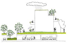 ontsluiting parkeergarage woon-werkunits kantoren dek