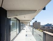 Auch die Geschossfassaden, die auf einem charakteristischen festen Raster von 110 cm aufgebaut sind, wurden in Angriff genommen. Die vorhandenen Betonbinder wurden gereinigt und restauriert, und fehlende Binder wurden ersetzt. Zu diesem Zweck wurde ein spezieller „Aufsatzbinder“ aus Verbundbeton entwickelt. Der Rhythmus der Fensterpfeiler variiert, genau wie im ursprünglichen Entwurf.