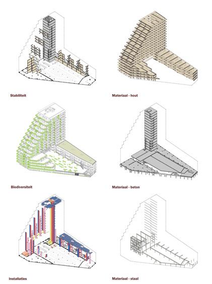 Unsere Expertise liegt in drei Bereichen: (biobasierter) Neubau, Umnutzung und Städtebau. Wir nutzen die einzigartigen Möglichkeiten biobasierter und hybrider Bauweisen, um nachhaltige Verdichtung und Transformation zu ermöglichen. Aufstockungen, Wiederverwendung und Erweiterungen mit leichteren (hölzernen) Konstruktionen tragen nicht nur zur CO2-Reduktion bei, sondern verbessern auch die Lebensqualität in Städten. In all unseren Projekten sind unsere Kernwerte verankert: Neue Werte, Flexibilität, Gemeinschaft, Kontext und Neue Ästhetik. Mit unserer Architektur beweisen wir, dass ein radikal nachhaltiger Ansatz nicht nur notwendig ist, sondern auch architektonischen, sozialen und wirtschaftlichen Mehrwert schafft.