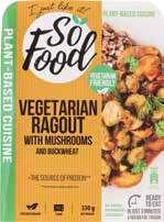 Piščančje meso v curry omaki z rižem ali vegetarijanski ragu z gobami in ajdovo kašo pakirano, 330 g 3 99