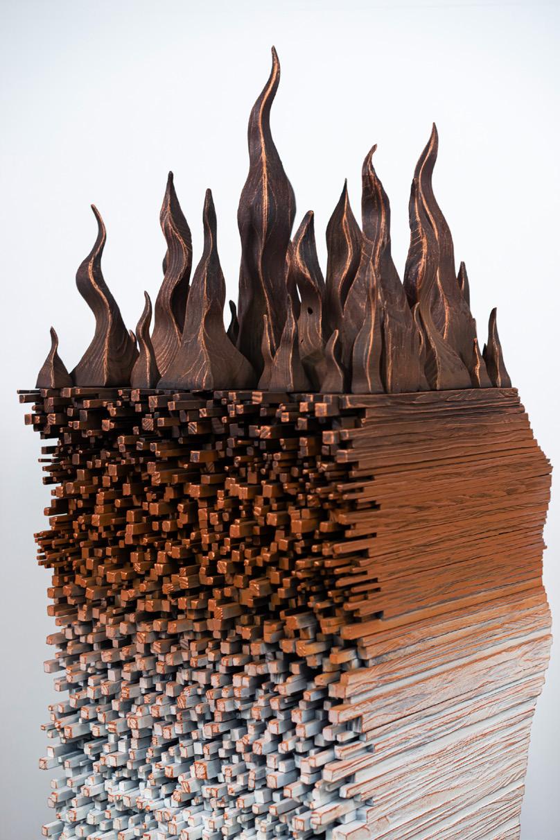 Stacked Wooden Sticks and Paint · 30 × 30 × 12 in.