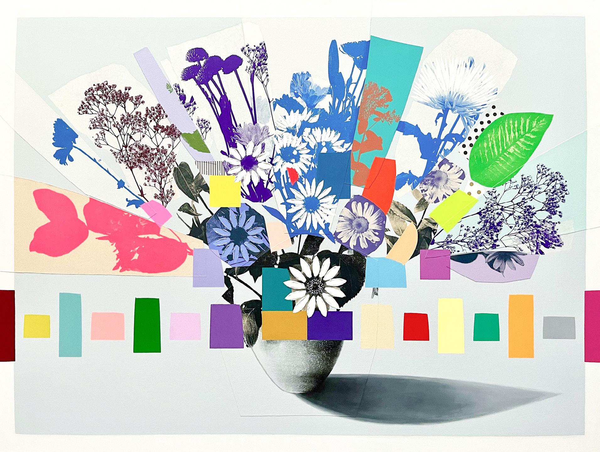 Opposite: Emily Filler · Vintage Bouquet V · Mixed Media on Canvas · 54 × 72 in.