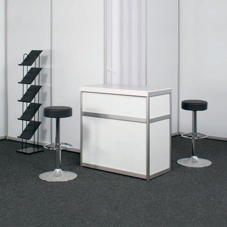You can easily make your counters and cabinets more attractive by choosing a colour or graphic that suits your stand. For more information about the options, see “Graphic Services” on page 24. Furniture prices include delivery to the stand and removal after the event. Remember to send an installation drawing showing the positions of the products in the stand. Send the installation drawing to the address asennuskuvat@messukeskus.com. Instructions for preparing the installation plan can be found at eMessukeskus.