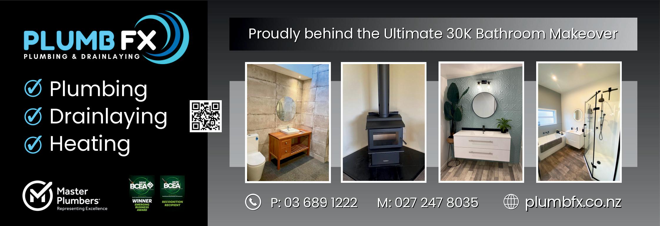 A recent campaign saw them give away the Ultimate $30k Bathroom Makeover to a deserving local family. “Our community campaign was the perfect opportunity to celebrate all the amazing people that make South Canterbury such a great place to live –from the selfless volunteers, and the community stalwarts, to the hometown heroes,” says Lara Welsh, co-owner of Plumb FX.