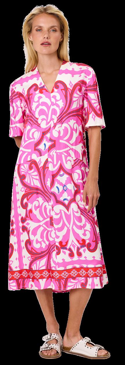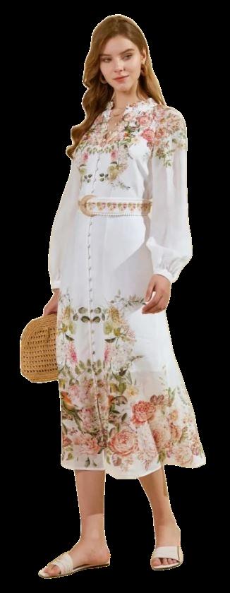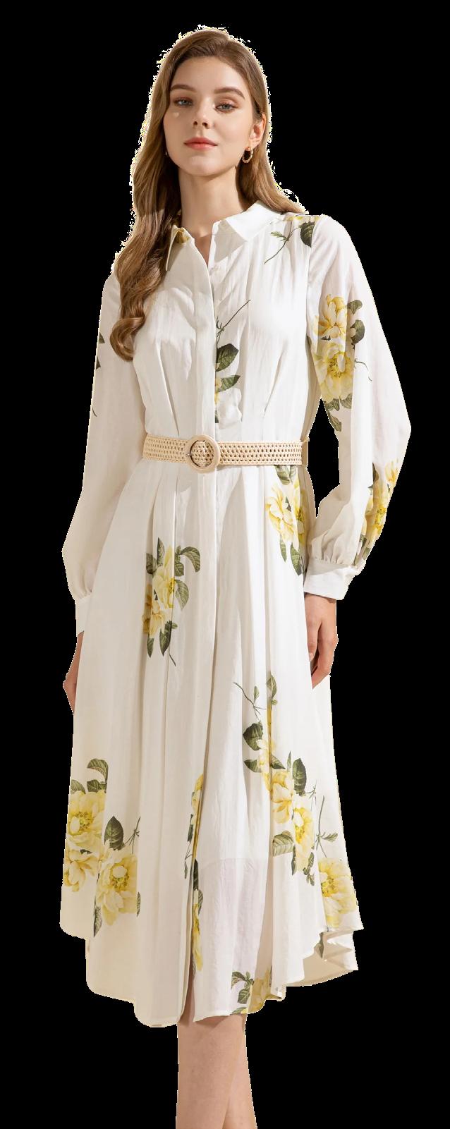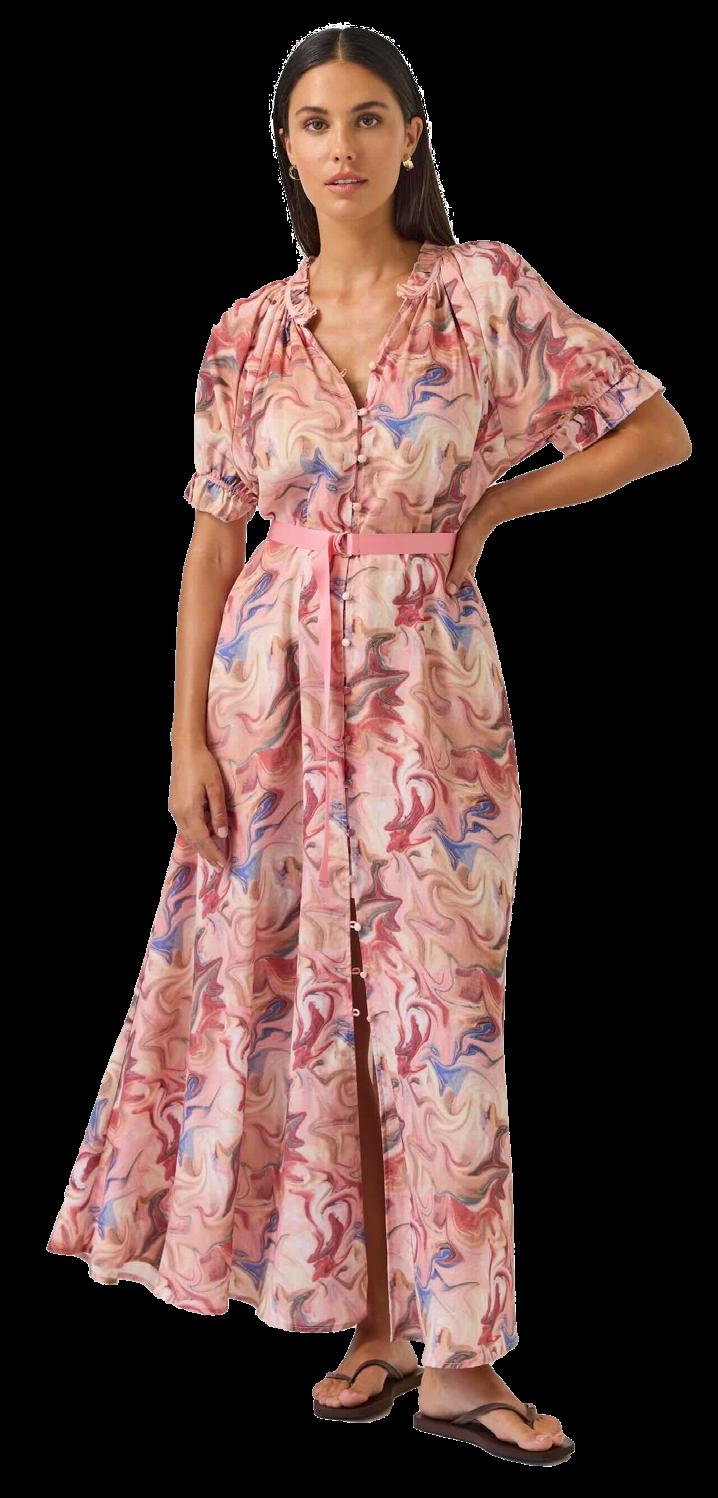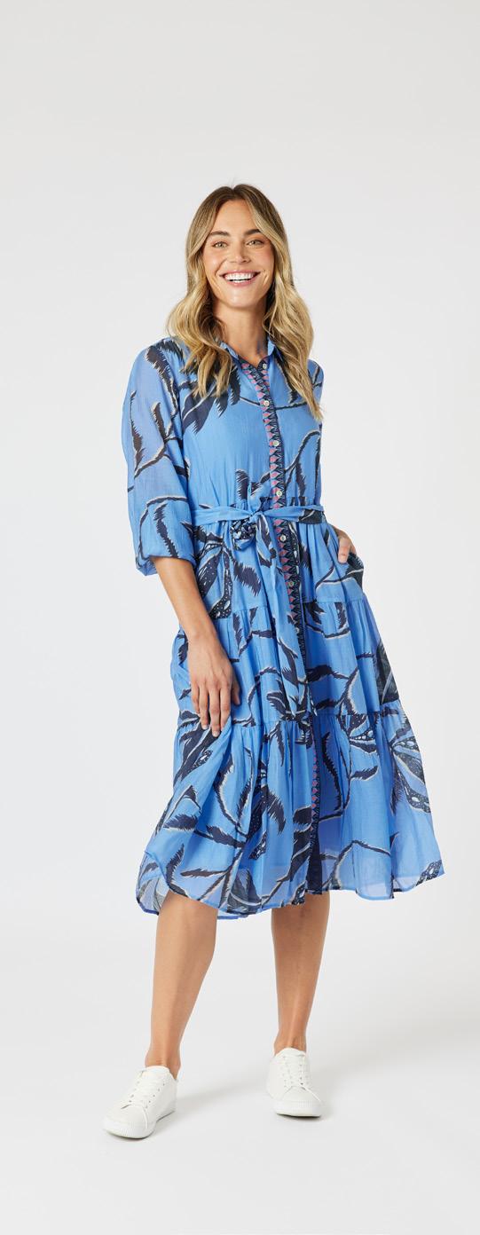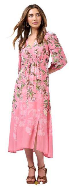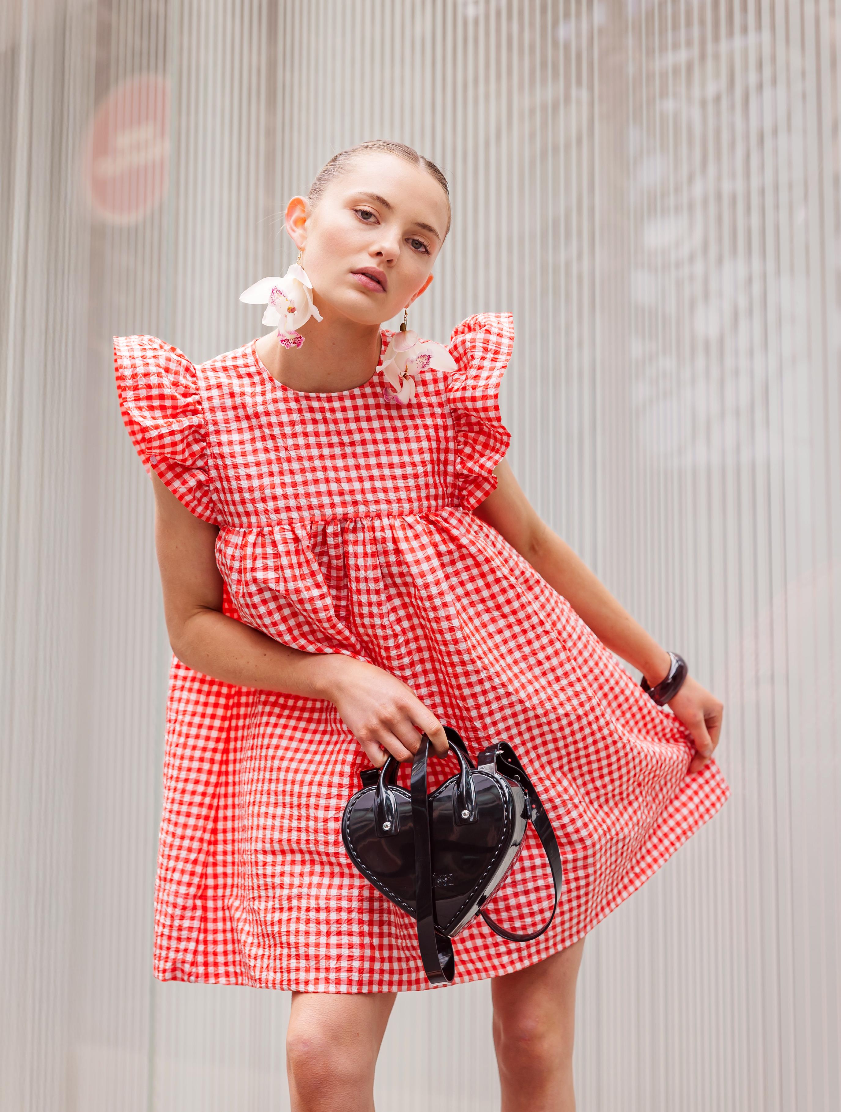 HOLLY WELCOMES SPRING FASHION TO THE CROSSING IN A WORKSHOP GANNI DRESS, FASHION SOCIETY BAG AND REAL ORCHID EARRINGS, STYLED BY JESSIE KIRK AND PHOTOGRAPHED BY JOANNE MCCLOY.