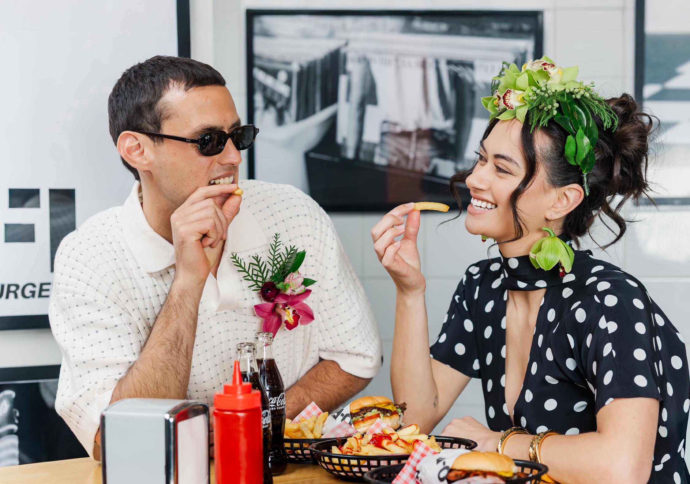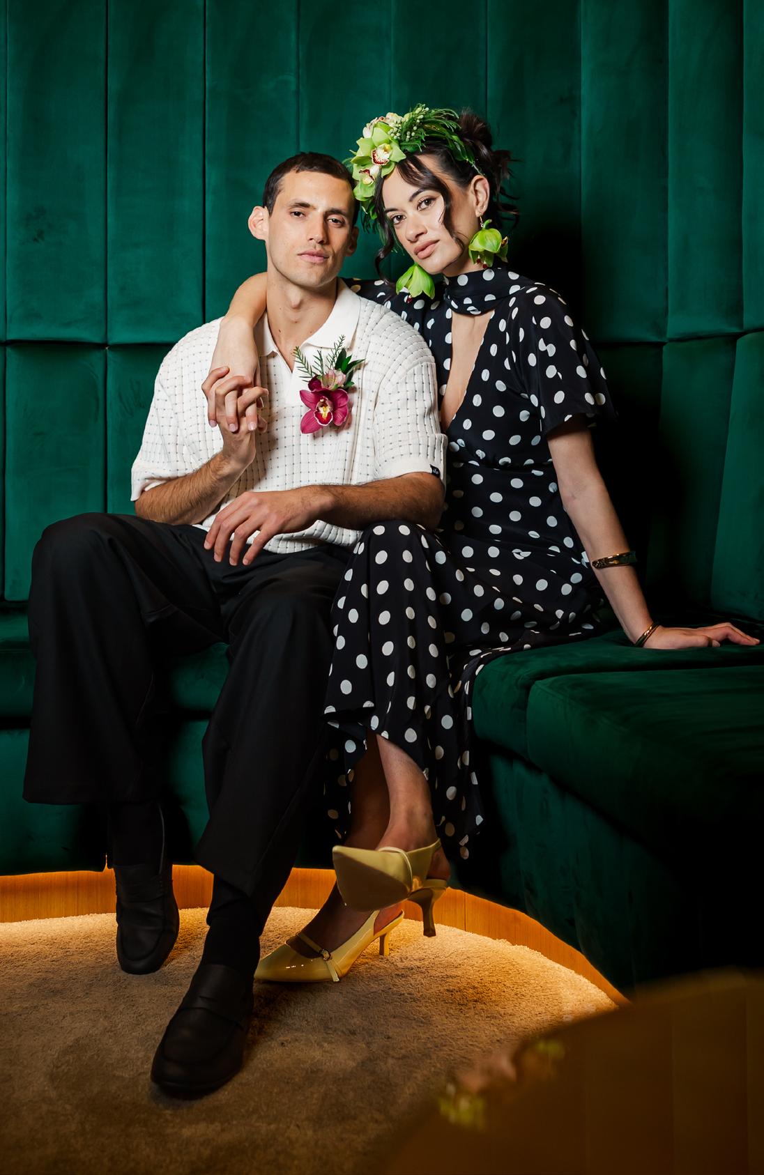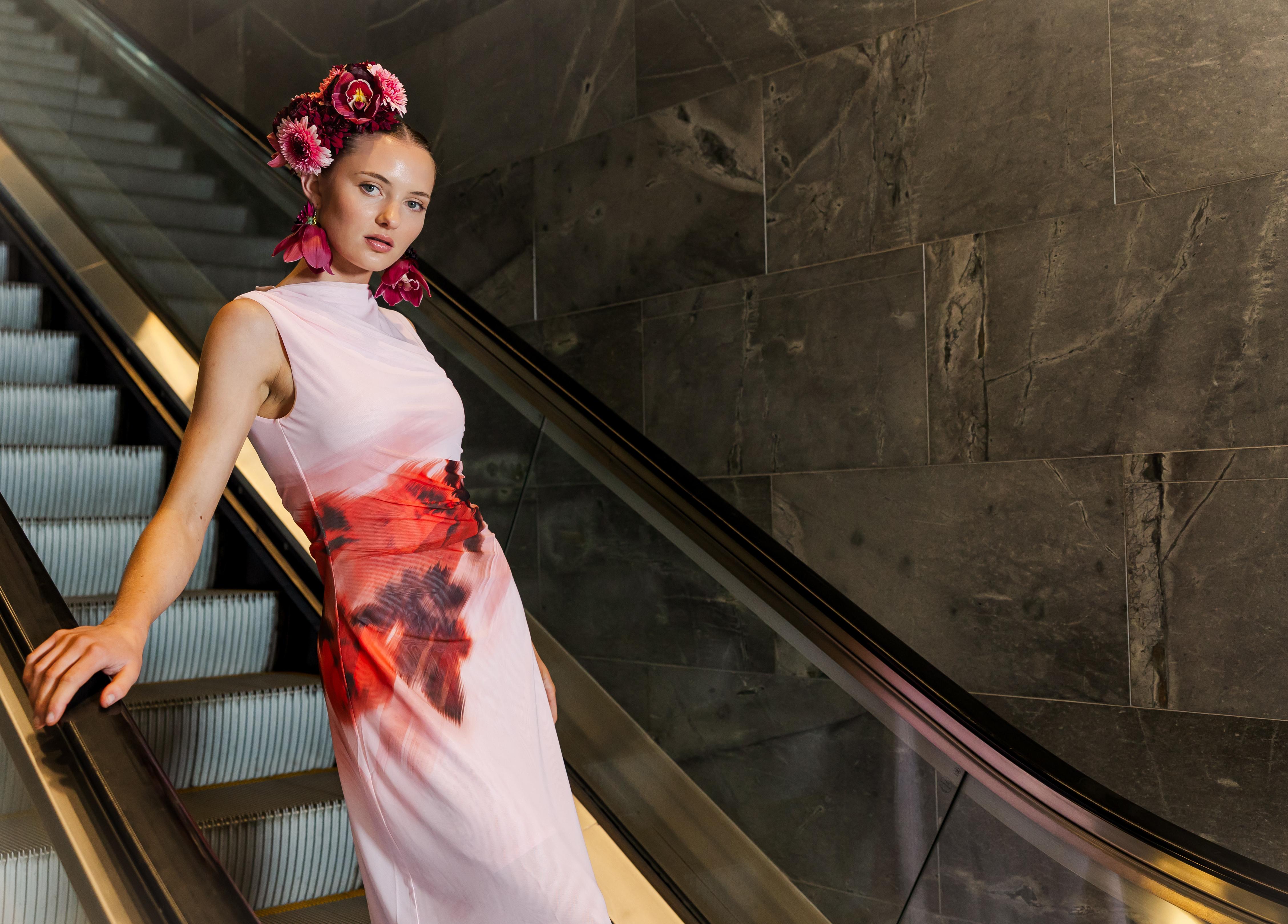 Instead of traditional fascinators, headbands and boutonnières, we enlisted Tholsie & Co, The Crossing’s on-site florist, to create headpieces and earrings out of real flowers and plants. Orchid earrings, succulent headdresses that you can, quite literally, replant in the garden after wearing – this was an incredible exhibition of fresh, all natural alternatives with such wow factor. One of the country’s most-loved names in style and, luckily for us, our shoot stylist, Jessie Kirk connected each beautiful element from fashion to flowers and brought this to life. Read more about Jessie, her journey beating breast cancer, and being awarded Fashion Quarterly’s 2024 content creator of the year, from page six.