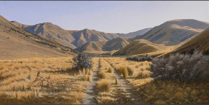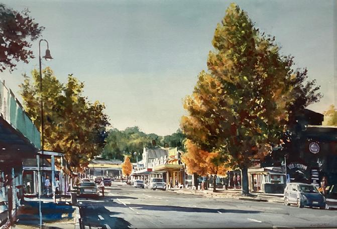 Amongst my paintings are winter views of the four peaks with summer views. Talbot Street is painted in the Autumn when the tree lined street turns to oranges and yellows. Visits to the high country of the Rangitata provide the grandeur of the mountains.”
