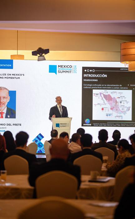 as a catalyst for innovation and adaptation. He emphasized nearshoring’s US$30 billion economic potential, particularly beneficial for regions like Bajio and the north.