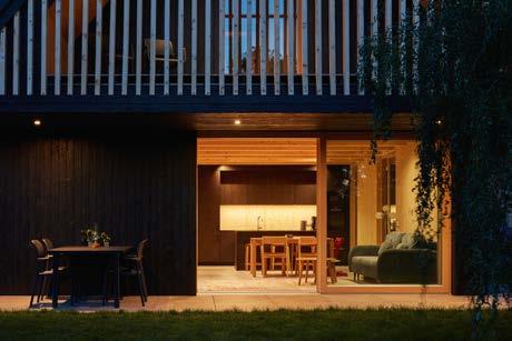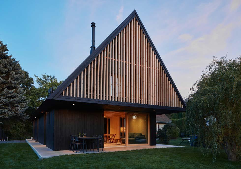 A new family home has been built in place of an old cherished childhood holiday hut, acknowledging the hut's influence on the new design.