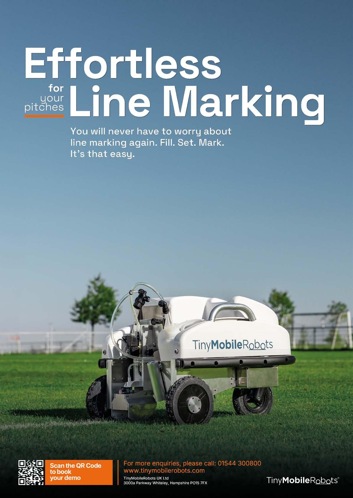 For further information or to arrange a free demonstration of the TinyLineMarker robotic line marker visit https://tinymobilerobots.com/ en_gb/book-demo/