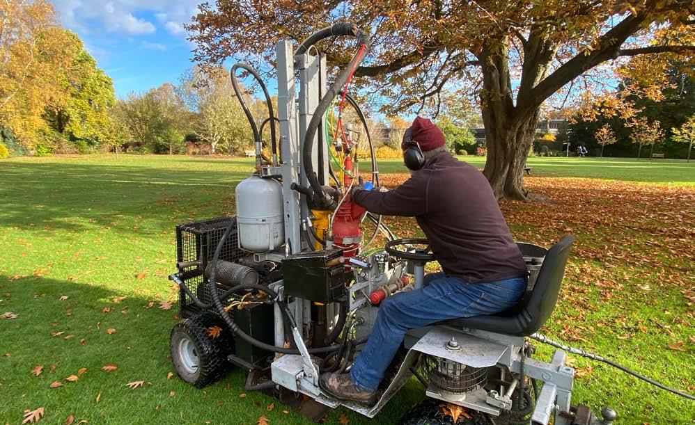 Whilst under the care of Head Greenkeeper Billy Hudson, who joined the club just under a year ago, the challenge has been slow drainage in the 18 greens. Billy knew the half-sand, halfsoil composition needed to be addressed to make progress, and he turned to STRI consultant Gary Smith during the club’s annual agronomy visit for advice.