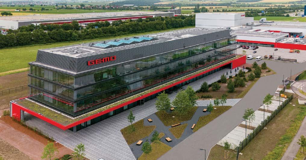 GEMÜ opened its new, prestigious company headquarters in June 2024. The new building is GEMÜ’s third site in the Hohenlohe business park, after the European Production and Logistics Centre (PLZ) and the Surface Technology Centre (OTZ). GEMÜ took inspiration from state-of-theart office concepts and chose sustainable materials when designing the new headquarters.