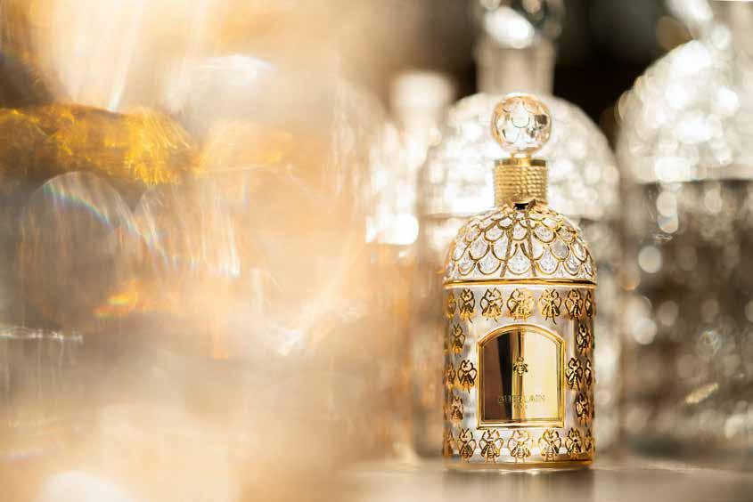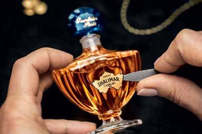 molécules de synthèse. Un véritable bouleversement pour l’époque. On dit que ce parfum est si avant-gardiste qu’il est d’abord porté par des hommes. Il faudra attendre quelques années pour que les femmes s’en emparent. Jacques Guerlain, son neveu, perpétue l’héritage familial. Son style, plus romantique, marque l’âge d’or de la parfumerie française, avec notamment L’Heure Bleue (1912), Mitsouko (1919), puis Shalimar (1925). Inspiré de la légende d’amour entre l’empereur Shah Jahan et Mumtaz Mahal, pour qui furent créés les jardins de Shalimar et le Taj Mahal, ce dernier s’impose comme le premier parfum oriental de l’histoire.