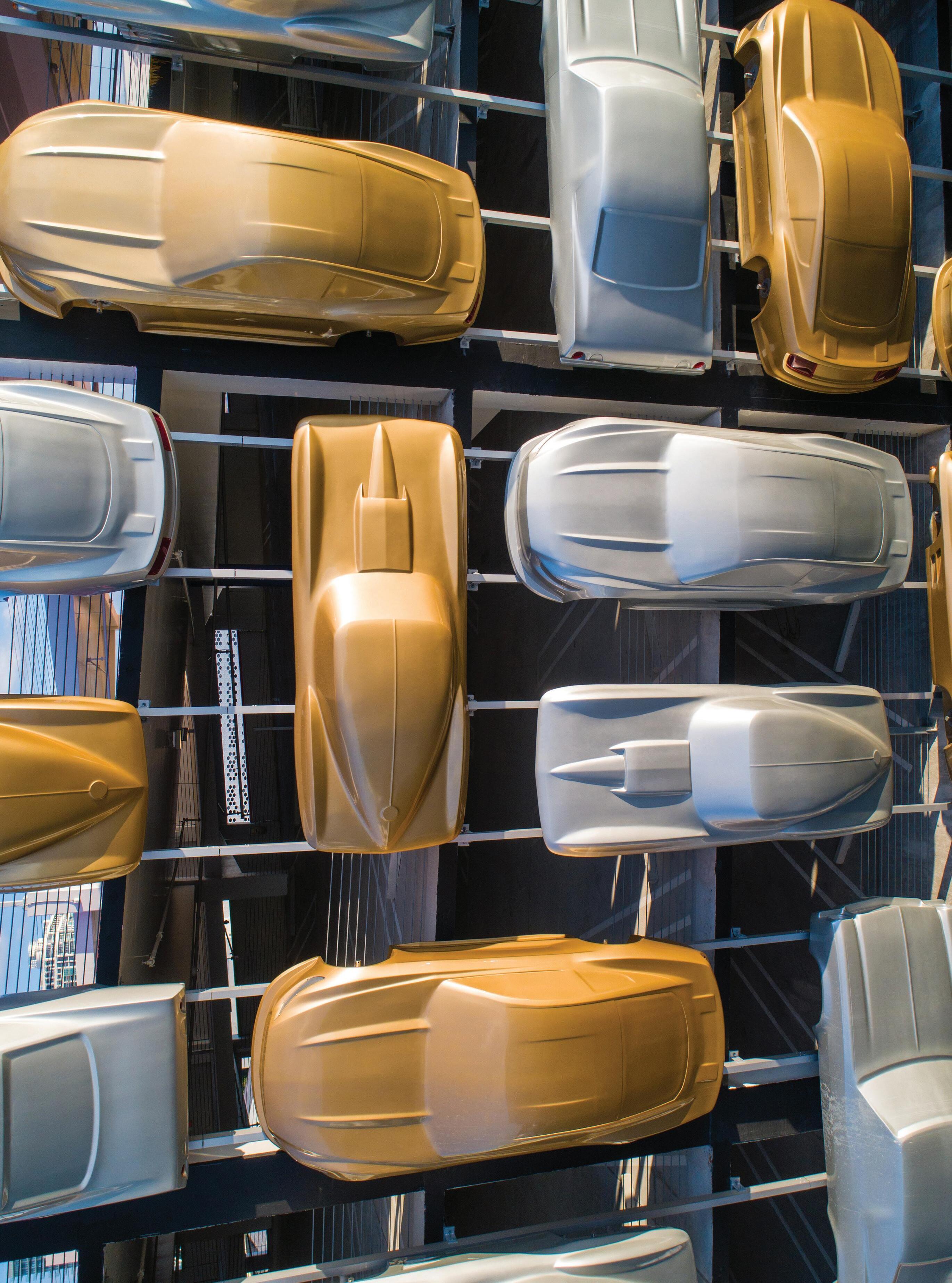 You can’t miss the large-scale installations, such as the towering “Fly’s Eye Dome” by Buckminster Fuller, which also leads to a parking garage, and the largerthan-life fiberglass bust sculpture of architect “Le Corbusier” by French artist Xavier Veilhan.