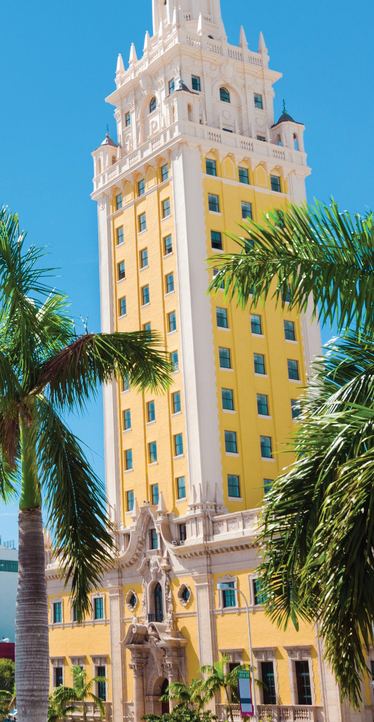 The Freedom Tower: Originally the headquarters of the Miami News & Metropolis, this historic building served as the “Ellis Island of the South.” It was the processing center for Cuban exiles fleeing Fidel Castro’s regime, and today it stands as a symbol of freedom and Cuban heritage. It is now home to Miami Dade College’s Museum of Art and Design. The tower and museum are currently closed as the building undergoes structural renovations.