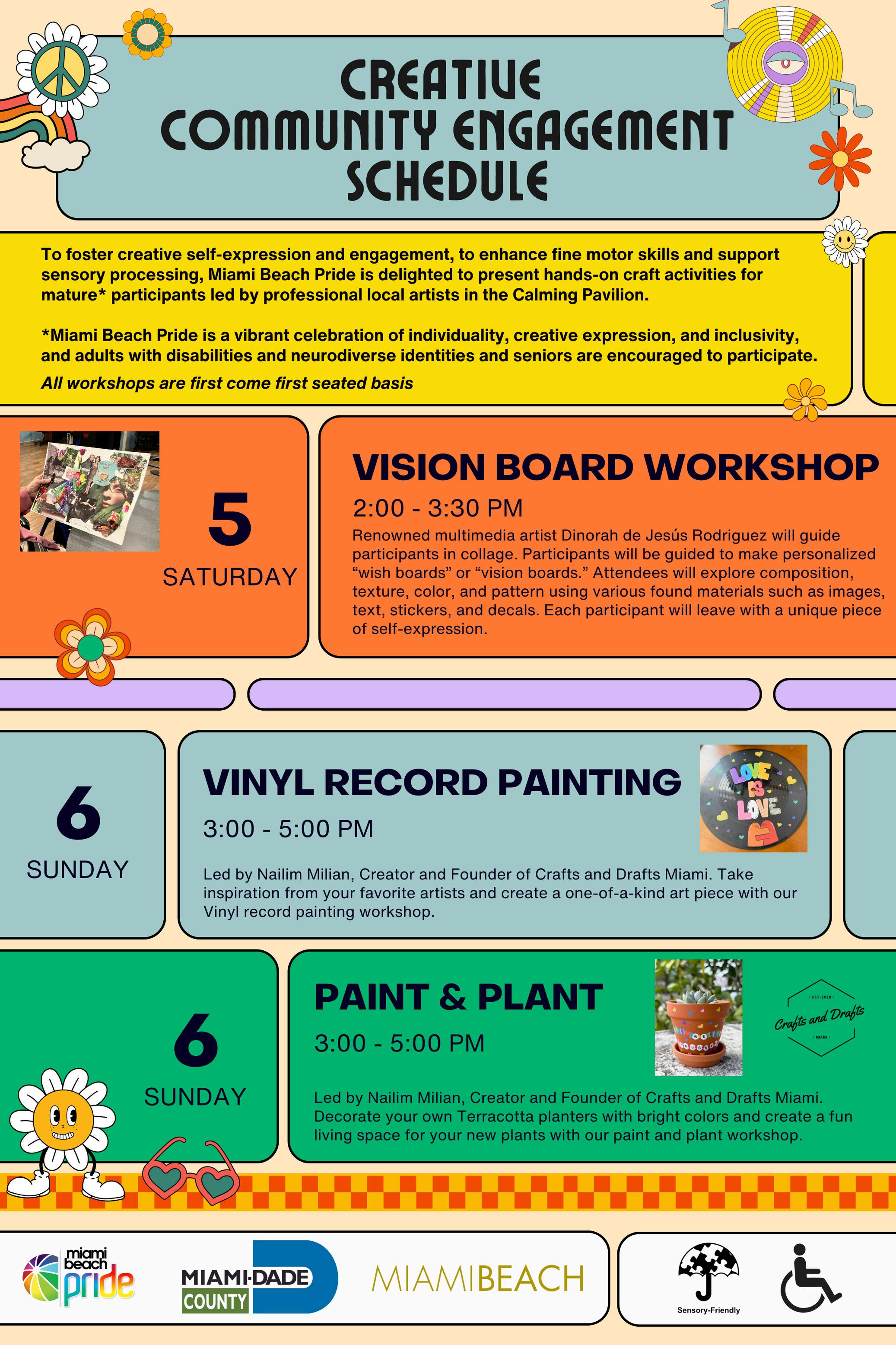 Miami Beach Pride invites you to the third annual Family Picnic with fun for the whole family including your fur babies featuring our BRAND NEW Farmers Market with over 25 vendors Join us on March 29, 2025 from 10am - 4pm to come play in the bounce houses, enjoy outdoor games, fun craft activities, food, drinks and more in Pride Park For those looking to bring more love into their family, the Humane Society of Miami is doing dog adoptions from 11am - 2pm They are fully vaxxed and looking for their furever home! Step into the Magic Moments Pavilion to enjoy various craft activities including: