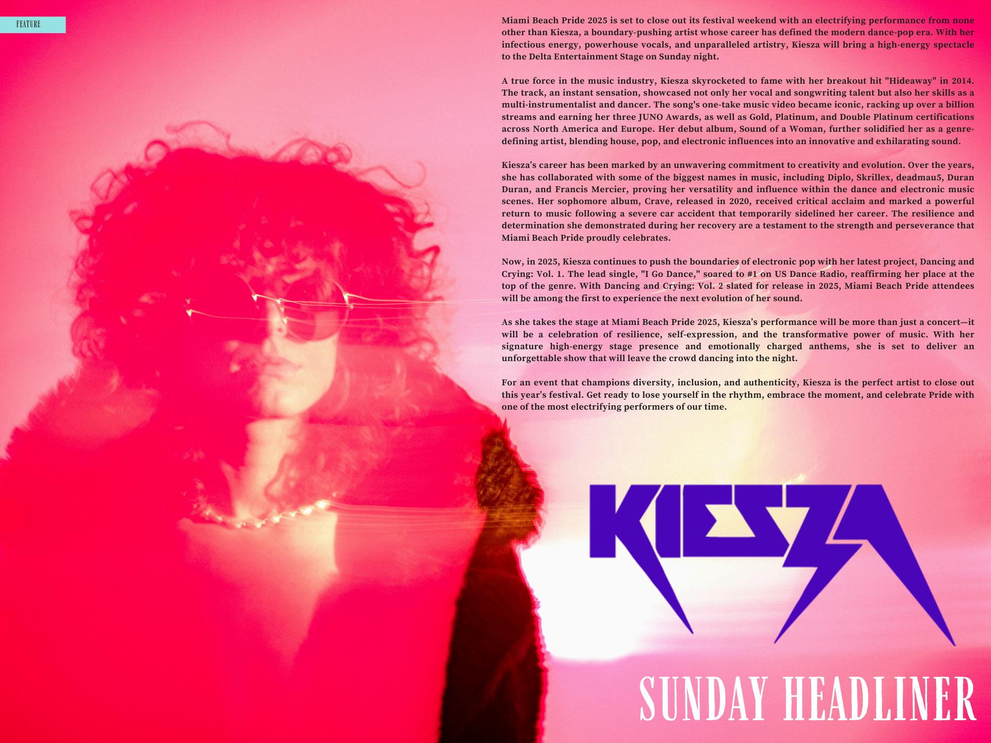 Closing out the festival will be “every drag queen’s favorite drag queen” Sasha Colby and Grammy winning artist of “Hideaway” the one and only Kiesza featuring surprise guests and a spectacular grand finale