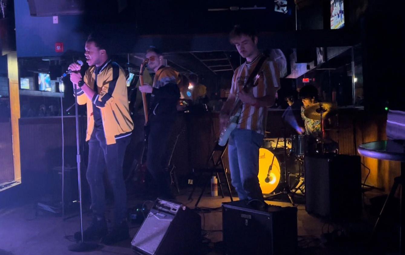 band and won best dressed as they dawned all yellow at the Battle of the Bands last semester. The band performs once a week for the guitar club and plays rock covers from artists like Arctic Monkeys and Jet. Although they don’t currently have any original songs, they’ve expressed interest in creating original music.