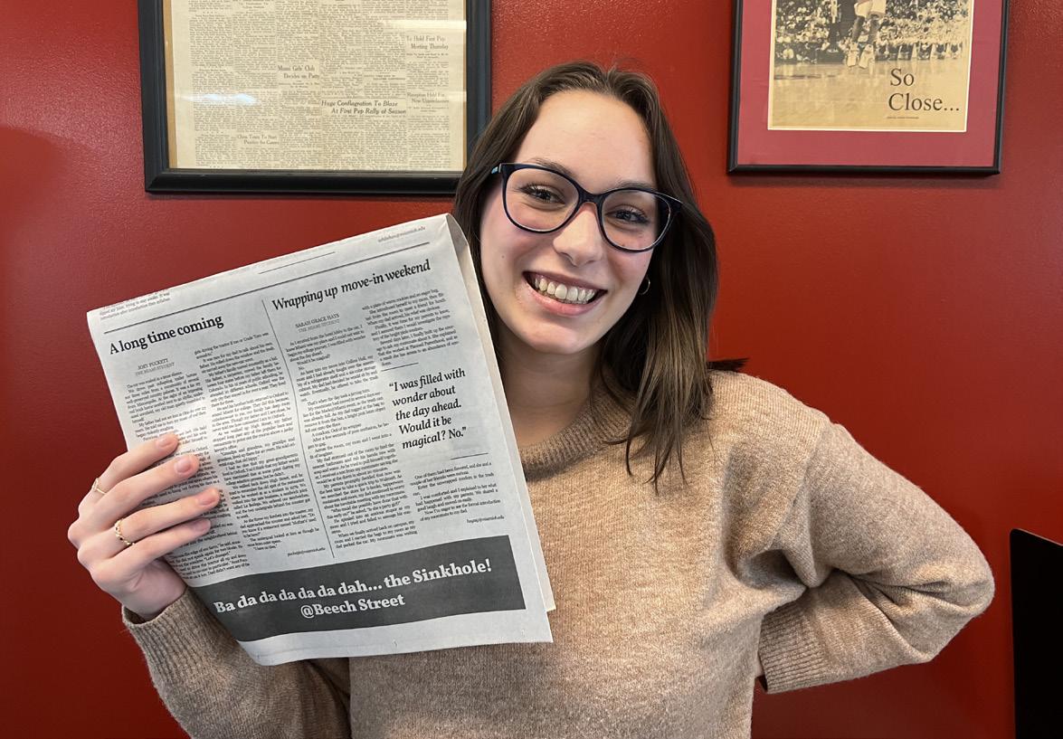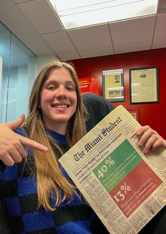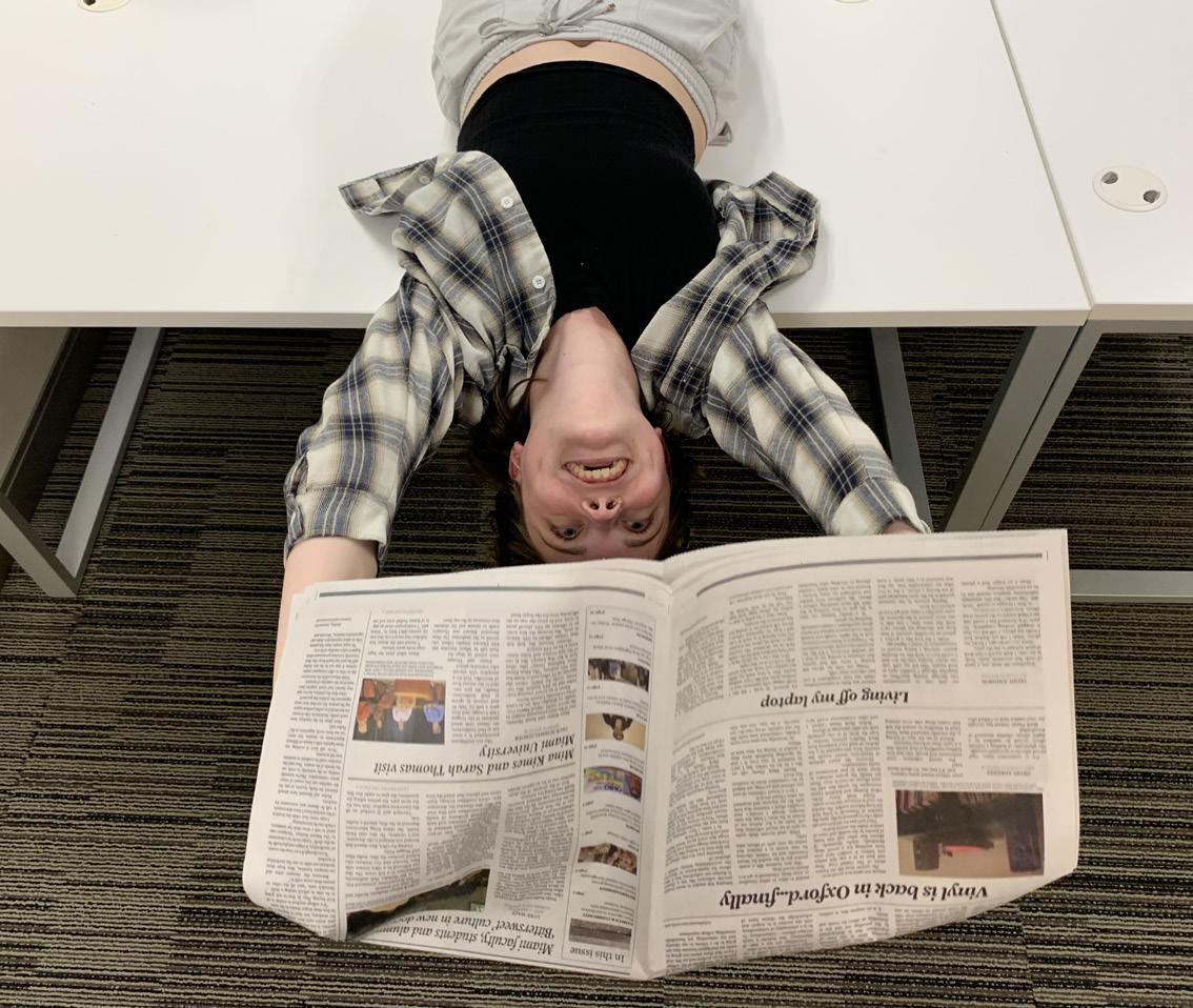 FOR LEXI WHITEHEAD, THE MIAMI STUDENT HAS BEEN A PLACE TO GROW AS A JOURNALIST, AS WELL AS A PLACE SHE COULD BE HERSELF AROUND ALL HER BEST FRIENDS. PHOTO BY HANNAH HORSINGTON THIS WEEK IN OPINION, WE SAY GOOD-BYE TO OUR RETIRING SENIOR EDITORS AND WRITERS AS OUR 2023-2024 STAFF STEP INTO THEIR NEW ROLES. GRAPHIC BY SOREN MELBYE VIDEO EDITOR HANNAH HORSINGTON JOINS THE VIRAL TIKTOK SENSATION, A “WHAT ARE YOU LISTENING TO?” VIDEO. PHOTO BY BESTIE MAGGIE PEÑA OUTGOING ENTERTAINMENT EDITOR MAGGIE PEÑA WILL MISS ALL THE FRIENDS SHE HAS MADE AT THE MIAMI STUDENT AND ALL THE FUN TIMES THEY HAVE HAD TOGETHER (INCLUDING THIS MANILA ENVELOPE HAT). PHOTO BY SEAN SCOTT