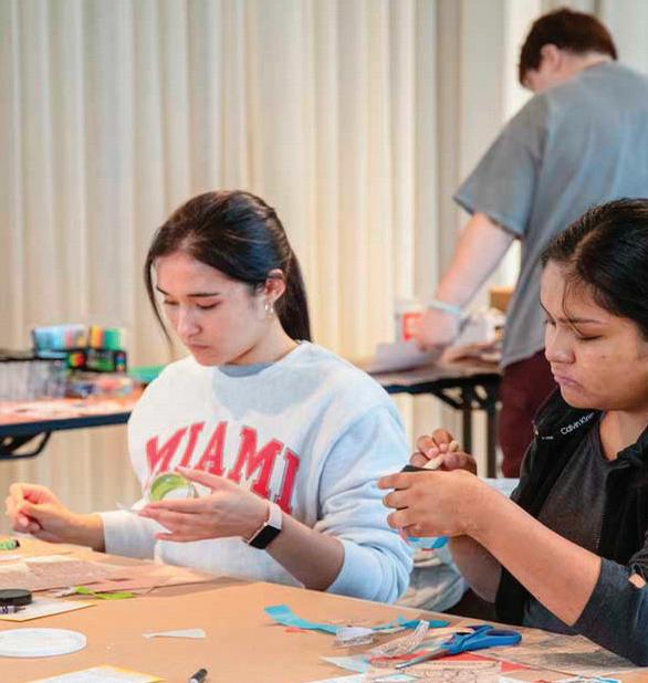 At right, Maisee Short and Brooke-Lynn Clark ('25) at the opening of the AWMU Art Exhibition, April 11, 2025. Art and Wellness was a semester-long program that provided Miami University students the opportunity to create art and practice mindfulness, hosted by the Art Museum. The program took place 1-2 times weekly, for two hours, with a new art experience in each of the 14 sessions, connecting with more than 100 participants. This program, developed by undergraduate students Brooke-Lynn and Maisee, was an independent study project, that provided them with opportunities to explore and develop their passion and aspiration for becoming art therapists. The program continues for Miami students during the Fall 2025 semester every Saturday (September-November) from 2-4 P.M.