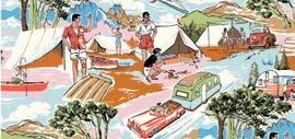 Pack your bag and camera and hop into your camper, it’s time to hit the road! “Retro Road Trip” takes you on a journey with its vintage mid-century Americana feel. The use of colors from the past era & kitschy imagery captures the spirit of nostalgic adventure and exploration. This collection will give any quilt a sense of retro charm.