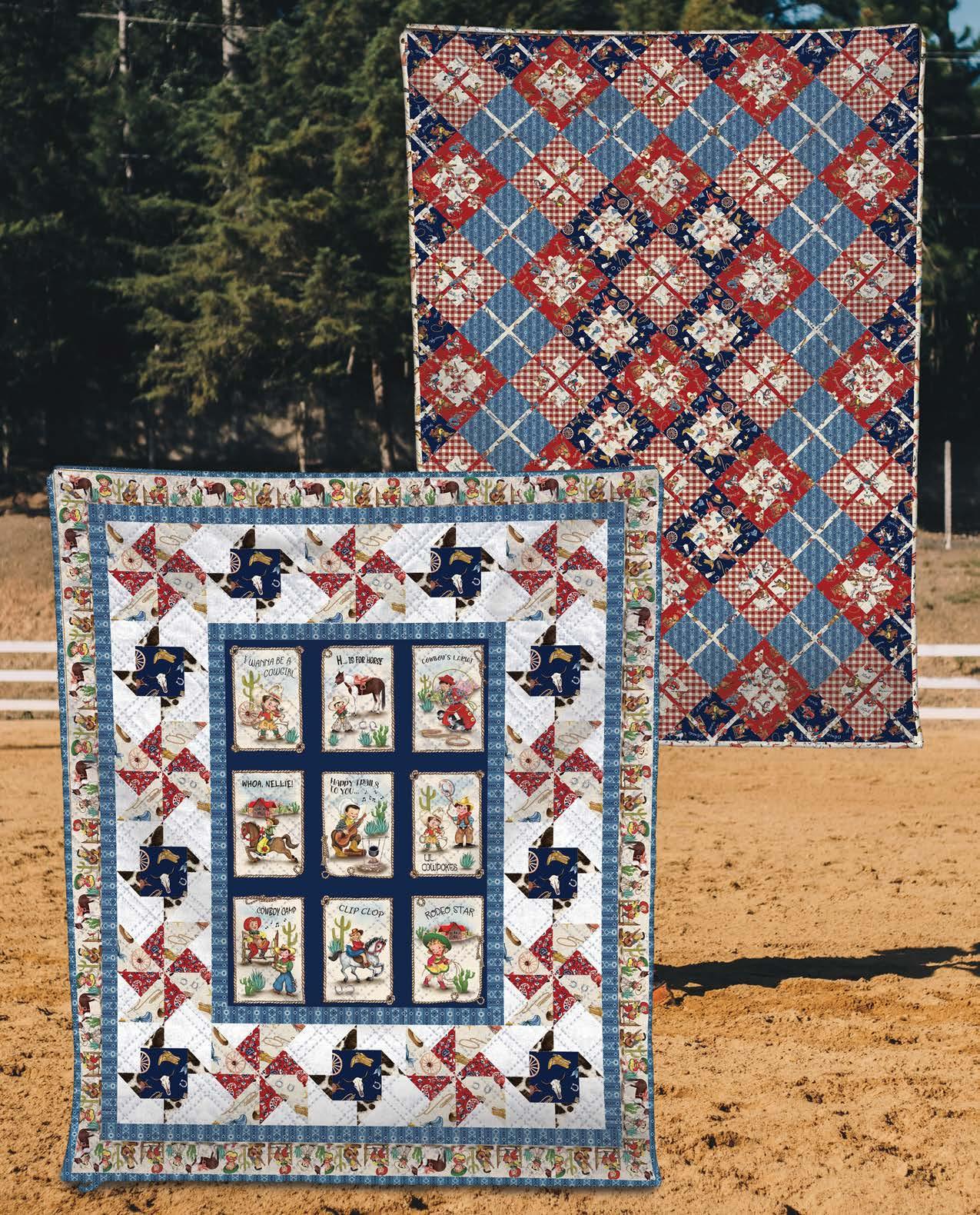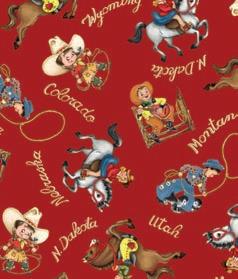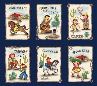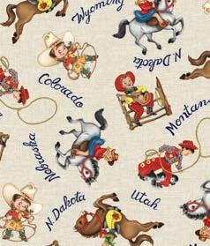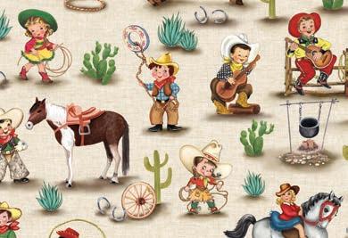 Time for a rodeo round up! We’re back with an iconic Michael Miller collection. These adorable cowboys and cowgirls are working hard on the ranch. The cowhide print and calico paisley combine with the characters to create a great quilt or apparel project.